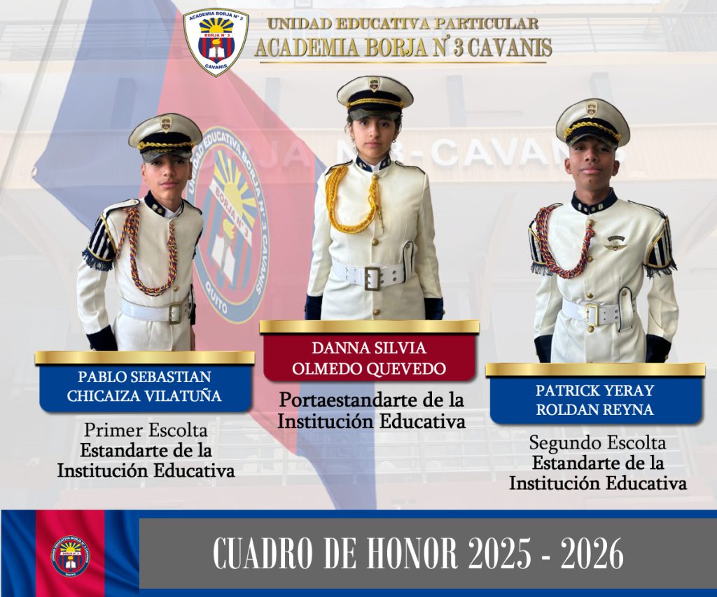 Bienvenidos al sitio web de la UNIDAD EDUCATIVA PARTICULAR ACADEMIA BORJA No 3 CAVANIS, ubicada en la calle Veracruz Nº433 y Av. República, Sector Mañosca. Agradecemos si interes en nuestra Institución y en sus actividades académicas y formativas.