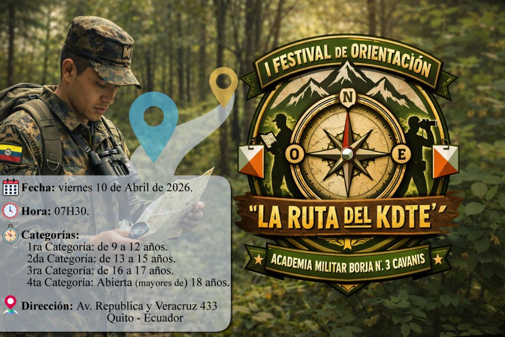 La Academia Militar Borja N.° 3 Cavanis invita cordialmente a participar en el I Festival de Orientación “La Ruta del Cadete”, que se realizará el viernes 10 de abril en las instalaciones de la institución.