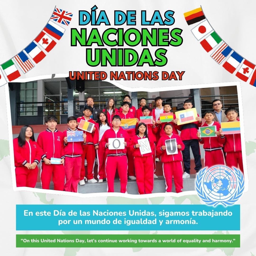 Los estudiantes de 1.º de Bachillerato General Unificado presentaron un significativo minuto cívico en conmemoración del Día de las Naciones Unidas, resaltando la importancia de la paz, la cooperación y el respeto entre los pueblos del mundo.